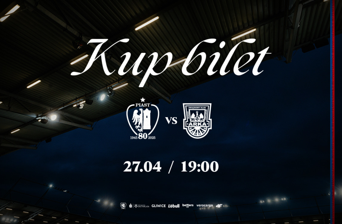 Trwa sprzedaż biletów na mecz 30. kolejki PKO Bank Polski Ekstraklasy, w której Piast Gliwice zagra przed własną publicznością z Arką Gdynia! To spotkanie zostało zaplanowane na poniedziałek, 27 kwietnia na godzinę 19:00.